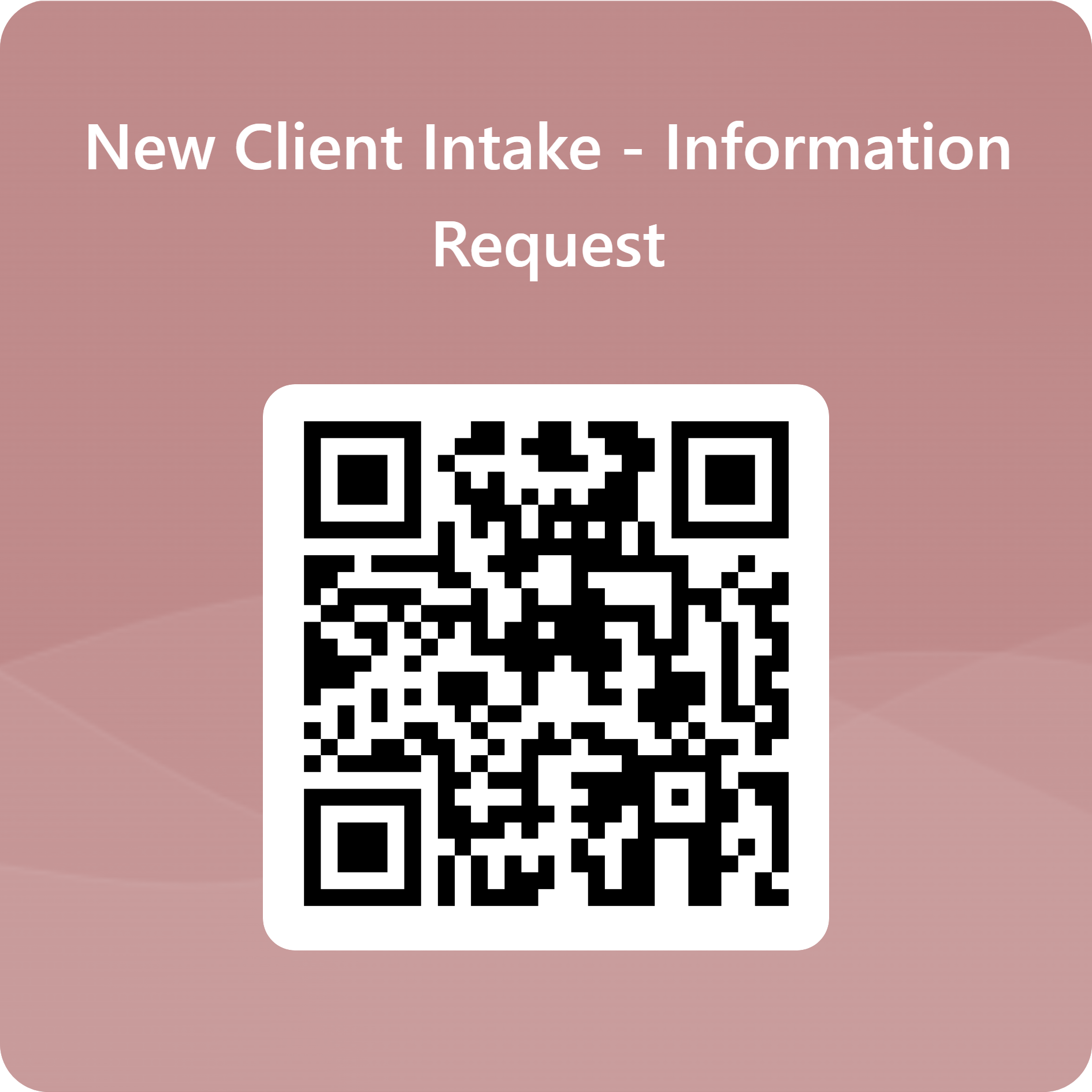 If you are a new client interested in services, please complete the intake form at the QR code. As our services are all customizable, this intake form is informational only to help us get an understanding of your business so we can suit your needs and budget!